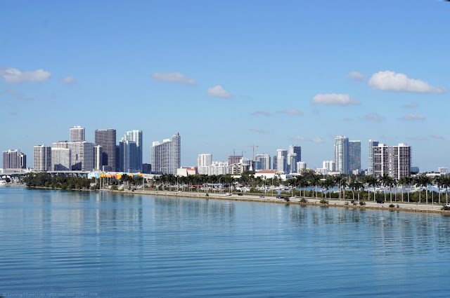 Miami is a busy port, and this day was no exception. One of the ships we were going to be taking later on, Royal Caribbean's Empress the Seas, was also in port. As we sailed out, we looked back to see little Empress of the Seas being chased out by the far larger Allure of the Seas.